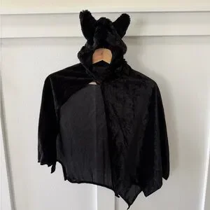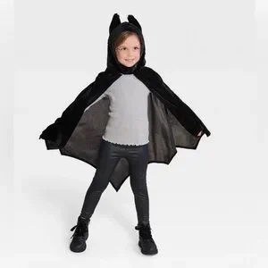 Kids one size fits most bat Halloween cape with elastic wrist bands. Target says suitable up to age 8, but I wouldn’t agree. My 3.5 year old wore this costume last year and it fit her great! This would be much more suitable for a toddler/young child. The tag has been removed and there is minor piling on the inside of the costume. Was only worn once.