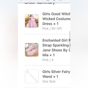 Enchanting pink costume dress for girls. Perfect for dress-up and play. NWT. Girls Wicked Glinda inspired Halloween costume or play dress. Includes size 4 shoes and wand. Dress is size 9-10y
