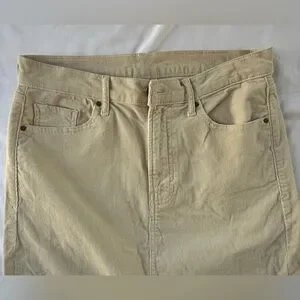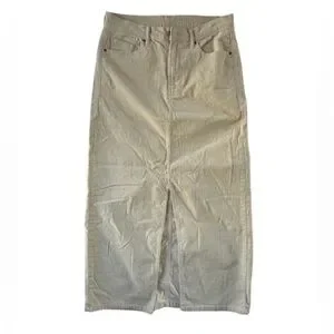 Chic and timeless, this a.n.a. (A New Approach) high-rise corduroy midi skirt is the perfect neutral piece for your fall and winter wardrobe. Made from soft corduroy fabric in a warm beige/tan tone, this skirt features a classic five-pocket style, front slit for easy movement, belt loops, and a zip-button closure. Looks adorable dressed up with boots or casual with sneakers and a cozy sweater.