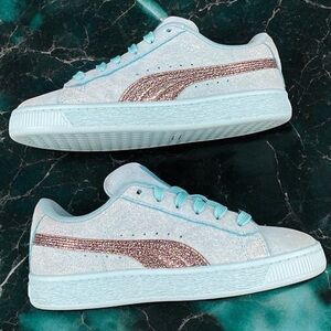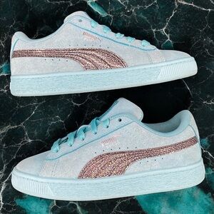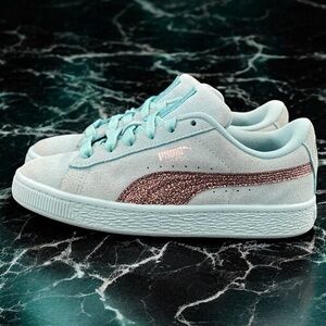 Puma Suede Classic Kids Teal Aqua Glitter Stripe Style 387846-01 Size: US 2.5C