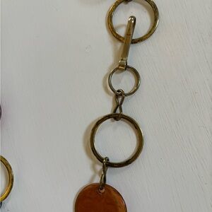 This vintage adjustable belt features lucite (possible Bakelite) plastic medallions and gold color rings. Some are tarnished. Measures 40 inches in length.