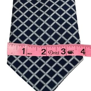 Brooks Brothers 346 Mens Neck Tie 100% Silk Navy and White Grid Geometric Tie