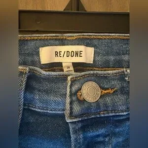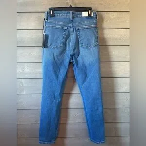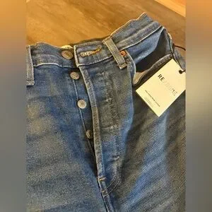 Classic blue jeans with a stylish knee rip. High-waisted design. Ideal for everyday wear.