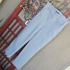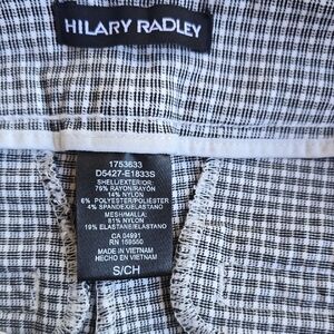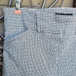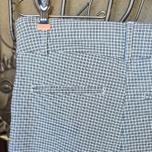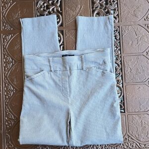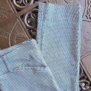 Chic black and white small plaid design. Pull on stretch pants with wide waistband and two inch belt loops. Front slit pockets. Back faux pockets. Ideal for versatile styling. Waist is 15 inches laying flat. Inseam is 26 inches. Hips are 16 inches laying flat.