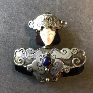 Sterling Silver and Lapis Brooch