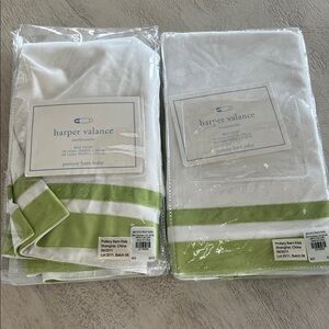 Pottery Barn Kids Harper Valance GREEN and WHITE NEW ~ Lot of 2