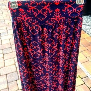Joe B Gypsy Boho Long Romantic Flowy Maxi Skirt sz S Modest Navy Coral-ish EUC