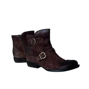 Born Brown Suede Distressed Leather, zip up bootie. 1” heel. Soft cushion insole.