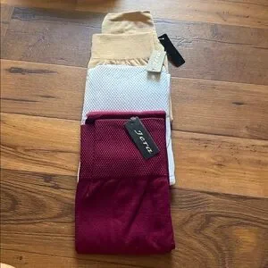 • White (middle): Leggings with a honeycomb or micro-mesh texture that enhances breathability while maintaining warmth.