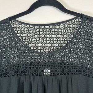 Gap Crochet Yoke Mini Shift Dress Black 3/4 Sleeves Lined Flowy Pleated Pull Over