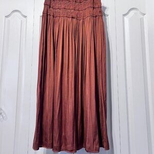 Current Air-Anthropology Maxi Skirt-Small-Rust/Bronze-Soft-Flowy-Comfy-Ruching