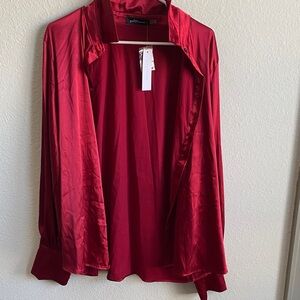 This womens chic red Good Time button down shirt offers a sleek and stylish look. Ideal for both work and evening outings. Brand new, never been worn. Still has tags. Size is 2XL. Brand is Good Time.