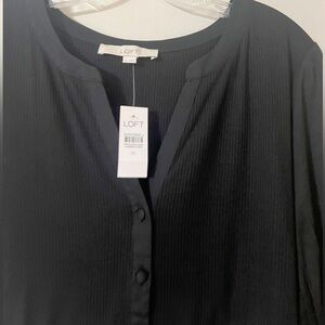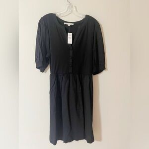 NWT $89 Loft V Neck, Button Front, Puffy Sleeve Dress - Black, Women’s Size XL