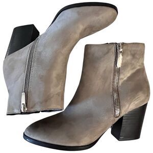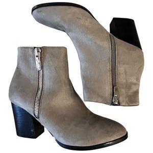 Nine West Neva2 Ankle Boot Gray/Taupe Suede 3”Heel Size 7M Double Zippers