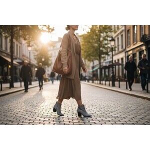 The Nine West Neva2 Ankle Boot in gray/taupe suede with a 3" heel is a stylish and versatile bootie perfect for various occasions like travel, casual outings, and business meetings. Featuring an almond toe shape, zip closure, and double zippers for easy wear, these boots offer both comfort and convenience. The high block heel and cushioned insole provide support and stability, making them ideal for all-day wear. With a timeless and trendy design, these ankle boots are a must-have addition to any woman's shoe collection.