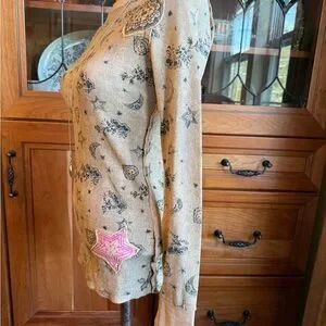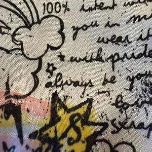 Scrapbook Beige Shirt with Black and Yellow Graphic