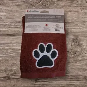 Enhance your kitchen with the Cream & Brown colored Scrubber Dish Cloths. This soft cotton cloth offers tough scrubbing power, perfect for everyday use. The charming dog on one scrubber towel & paw print design on the other scrubber towel. The design adds a playful touch to your cleaning routine.