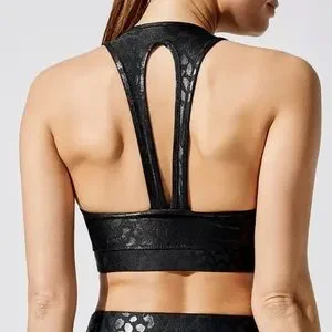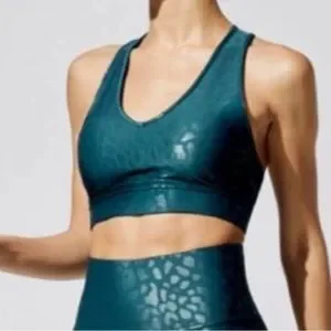 The newest iteration of our signature sports bra, this time in the season's new neutral. The Action Bra 2.0 in Leopard Takara Shine from Carbon38 features a glossy liquid finish with an all-over leopard print. Removable padded cups offer optional shape while the deep scoop neckline and sleek racerback lend a sartorial edge to this active drawer staple.