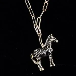 This striking necklace by Piper K features a zebra pendant on a chain.