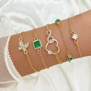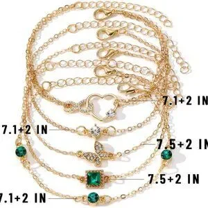 EMERALD RHINESTONE BRACELETS: Dainty gold bracelet include gold glossy bangles, cubic zirconia bracelets, these bracelets are suitable for layering as well as being worn alone for your everyday, also is perfect to stack with another bracelets.