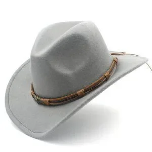 Gray Western Cowboy Cowgirl Hat, Skull Ace Band, Felt Wide Brim Men Women Rodeo