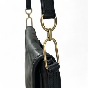 Fossil Rumi Black Leather Crossbody Purse Bag Brass Gold Hardware