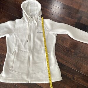 Columbia full zip hooded fleece jacket Cream Womens size M Warm Comfy Cozy Neutral