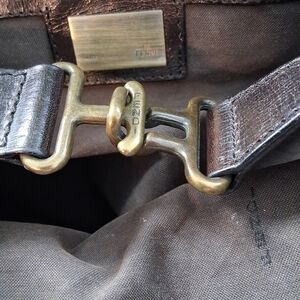Chic brown leather bag with metal accents. Stylish and versatile.