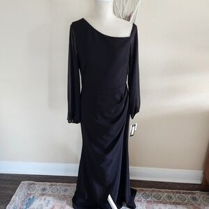 Betsy & Adam Black Donna Long Off the Shoulder Illusion Sleeve Dress Size 10 NWT