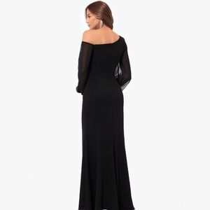 Betsy & Adam Black Donna Long Off the Shoulder Illusion Sleeve Dress