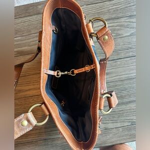 Vintage coach bag patchwork blues with leather straps and buckles