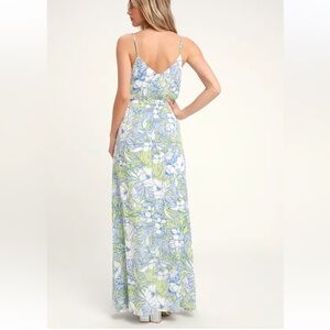 Lulus - Blue Floral Maxi Dress with Spaghetti Straps