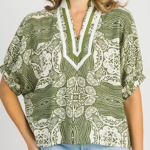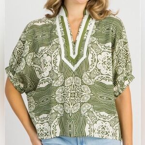 Entro Green and White Patterned Top