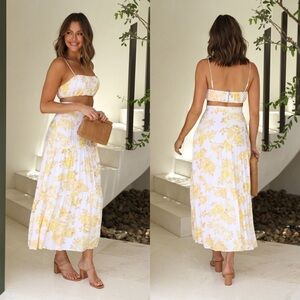 BILLY J Saraya White/Yellow Floral Top and Skirt Set