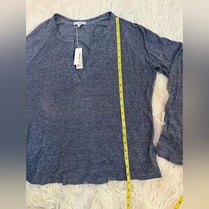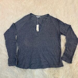 James Perse Split Neck Long Sleeve Tee 4/L NWT Heather Blue