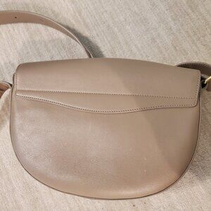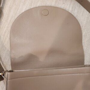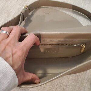 Beautiful bag from Cuyana. Near perfect condition, hardly used. This bag is discontinued, and I can provide a photo of the receipt to prove authenticity. Color is TAUPE. Interior zip pocket. Snap closure.
