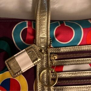 Coach Multicolor Tote Bag with Gold Accents vintage Poppy