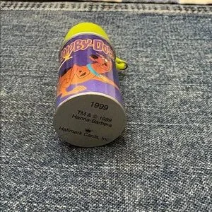 Scooby Doo, where are you? for 15 years, beginning in 1969, the perpetually petrified great Dane could be found on TV, traveling from one adventure to another in the mystery machine van. This keepsake ornament lunchbox show Scooby Doo with teenage detective shaggy as they encounter a ghost. Their pals, Velma, Daphne, and Freddy appear on the back of this ornament, which opens and closes like the real thing. The second ornament recalls the handy, coordinating drink containers that were so popular with the lunchbox bunch.