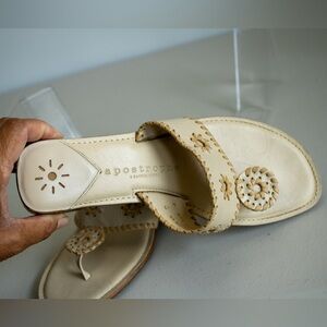 Apostrophe Jaclyn Cream Leather Sandals Floral Whipstitch Women’s Shoes Size 8