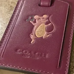 COACH NWOT Burgundy Leather Dancing Mouse Luggage Tag Bag Charm Sparkle Accents