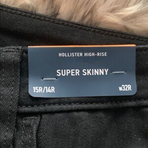 Size 15 juniors/ 14 women’s Hollister Super Skinny Jeans. Has extra side pockets. New with tags. Original price $49. All purchases come with a free gift! See my reviews.