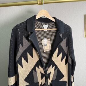 Women's Tasha Polizzi Black Gray Cream Aztec Button Front Cardigan Size S NEW