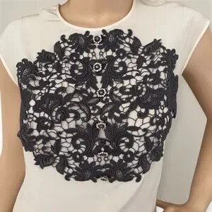 Style: Silk Black Lace Appliqué Crystal Embellished Cap Sleeve Blouse