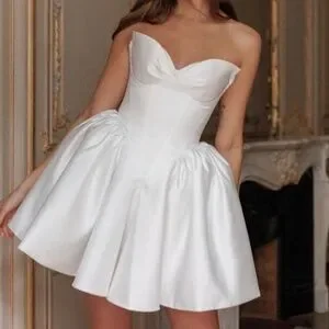 This elegant white strapless mini dress is perfect for any special occasion. Its chic design and flattering fit make it a must-have in your wardrobe.