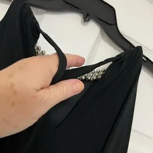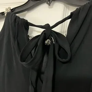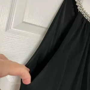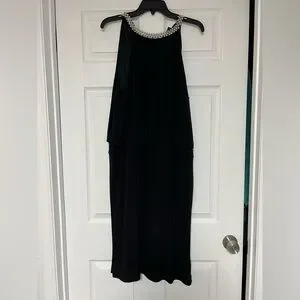 Chic black dress with elegant silver details at the neck. Has a black slip and wears like a two piece. Ideal for any event, it’s easy to dress up or down. Size XL fits like a size 9 or 10.