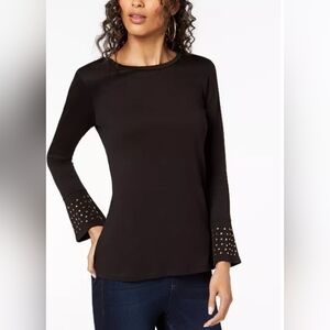 Michael Kors Black Fitted Long Sleeve Gold Stud Blouse NWOT Medium