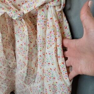Super soft cotton gauzy type fabric dress with belted waist and pockets.