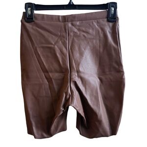 NEW WITHOUT TAGS SKIMS Faux Leather Biker Shorts - Medium Brown. Matching top also in my closet!
