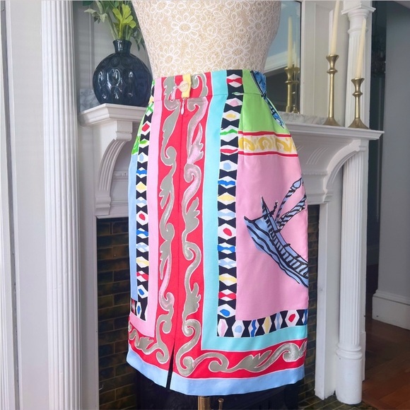 VINTAGE LOUIS FERAUD Silk “Paris Scarf” Print High Waisted Pencil Skirt Size 10