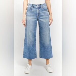 OAT New York Shari High Rise Wide Leg Stretch Crop Jean Frayed Hem in Blue, 10